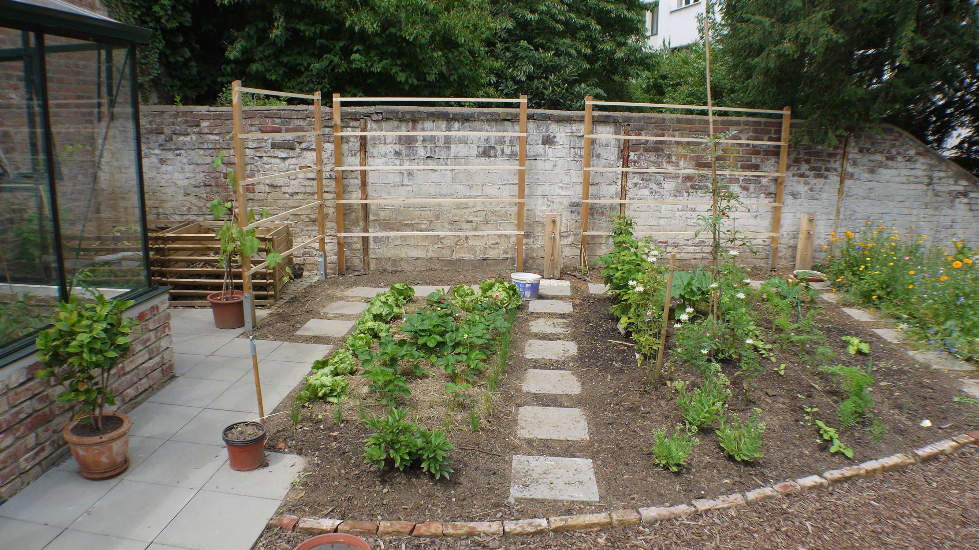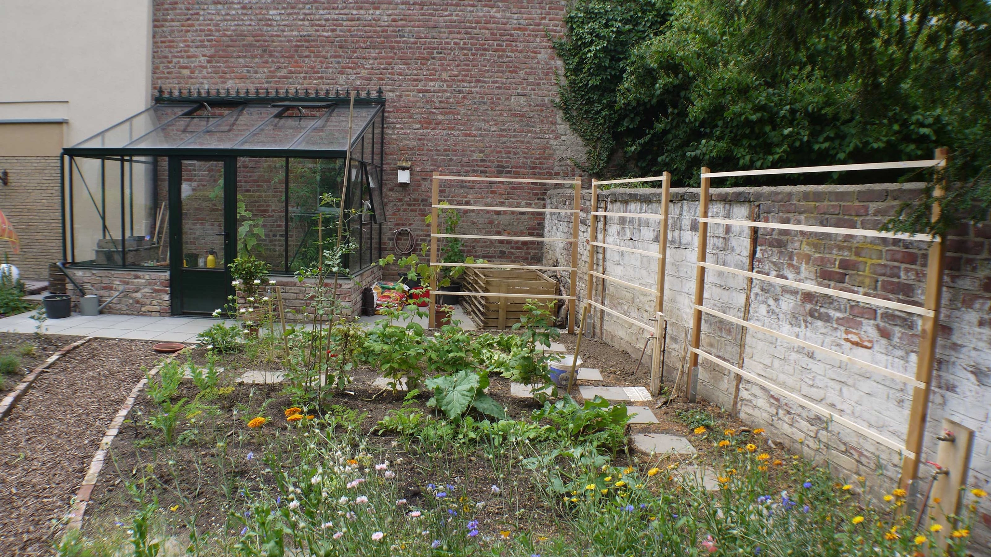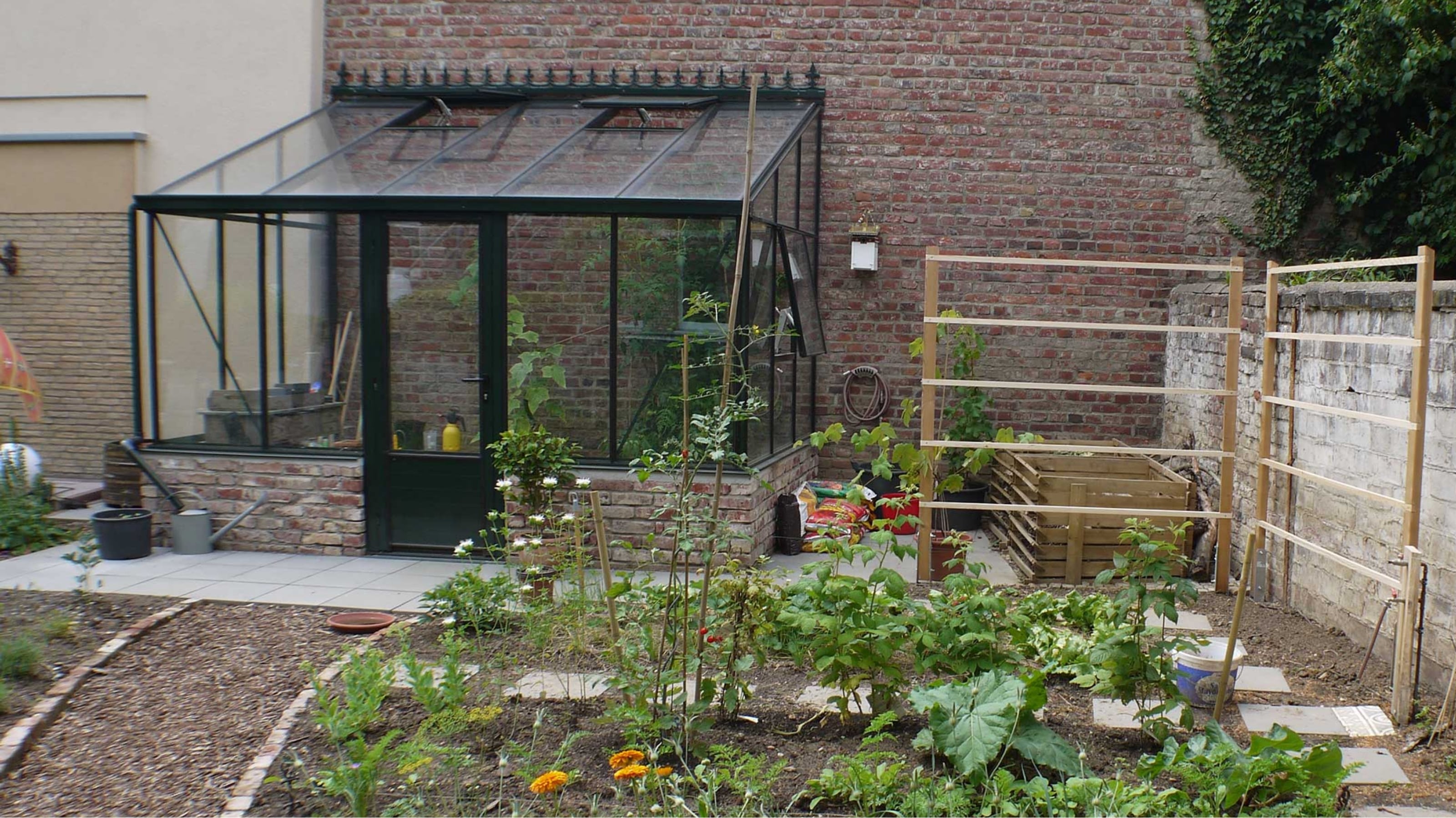 Gewächshaus, Kompost, Gemüsegarten
