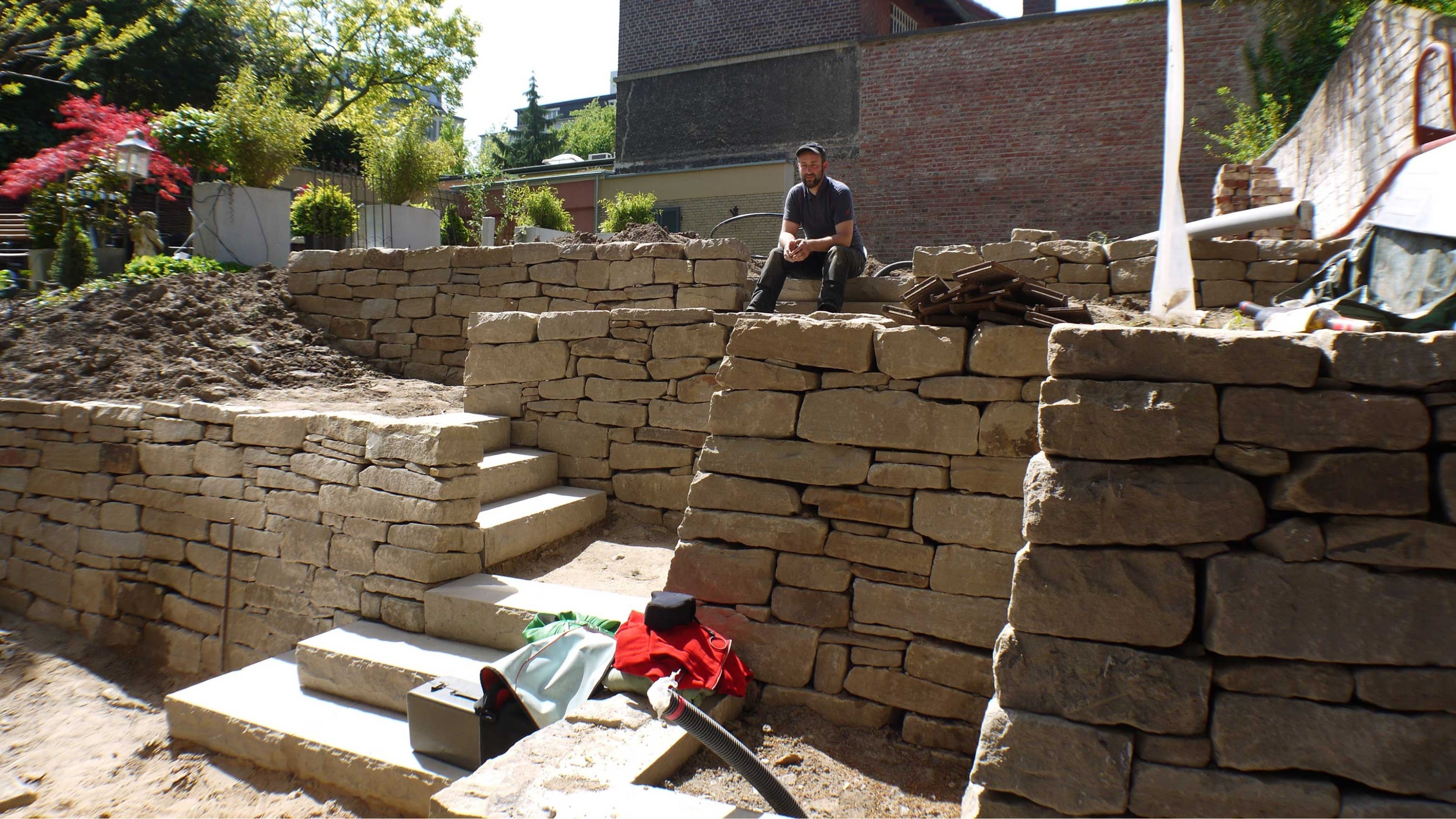 Sandstein-Trockenmauerbau