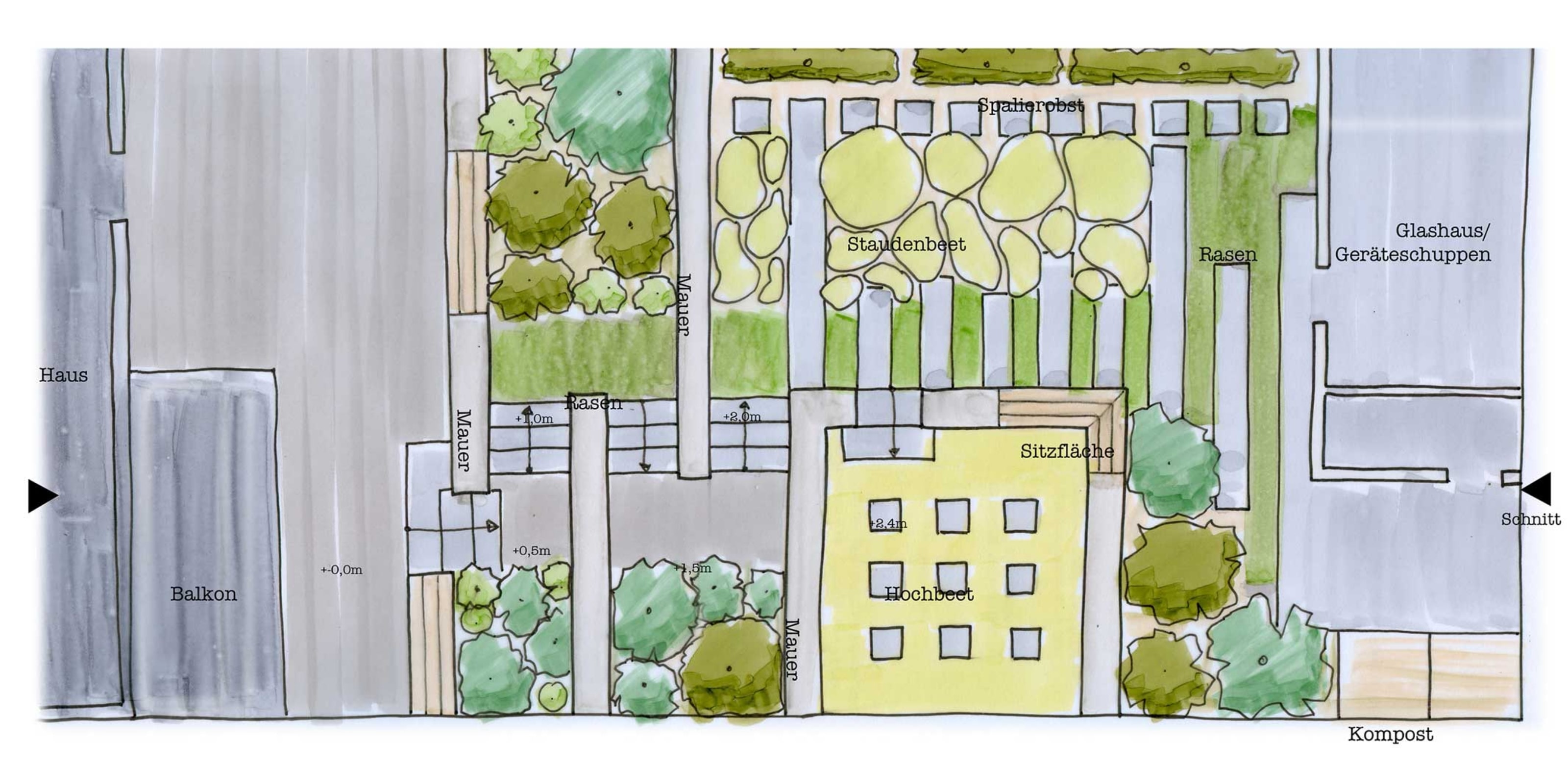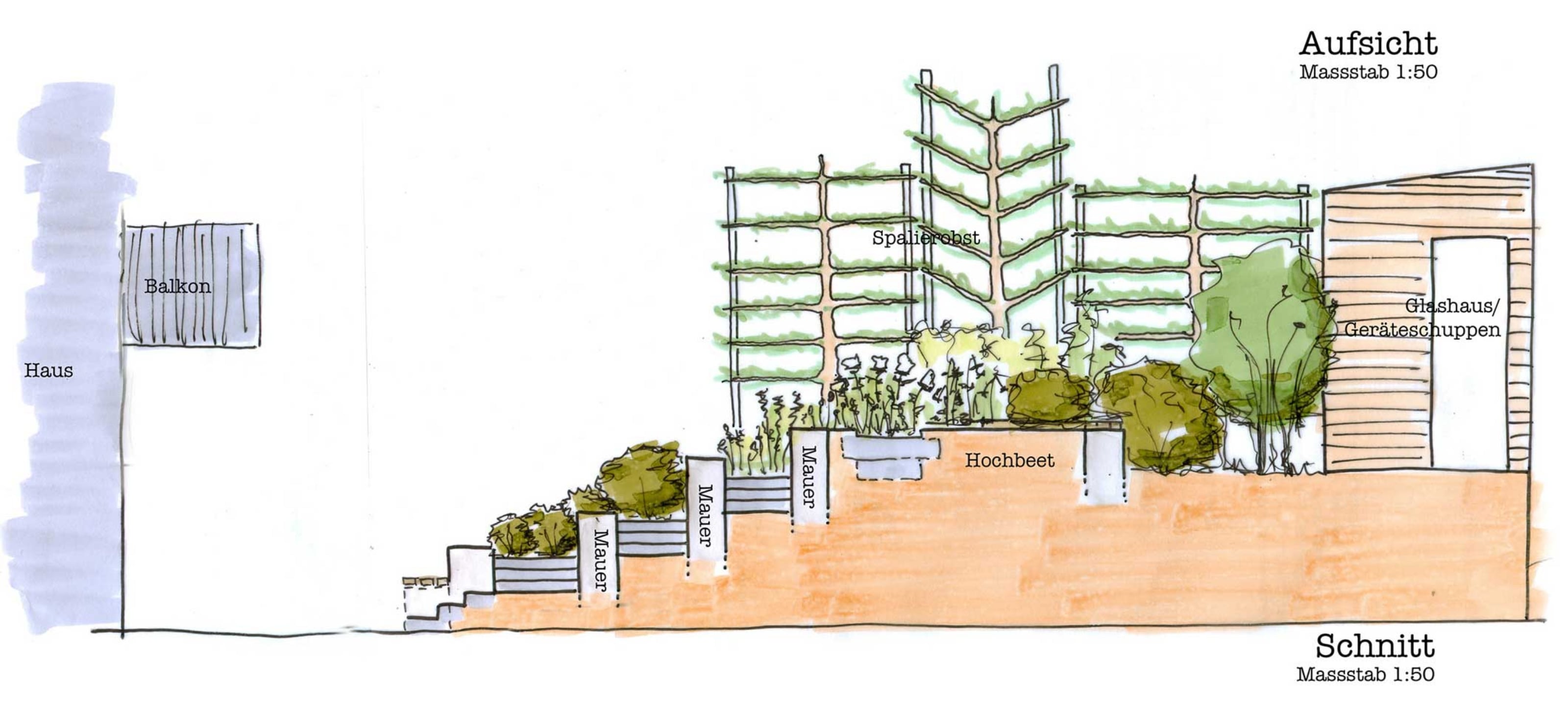 Ansicht obere Gartenebene